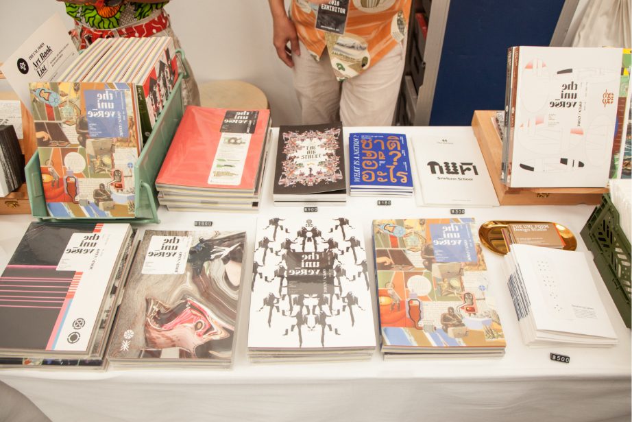 ในงานเต็มไปด้วยหนังสือ และสิ่งพิมพ์ศิลปะของเหล่าศิลปิน นักเขียน ช่างภาพ นักออกแบบ และนักวาดภาพประกอบ จนถึงสำนักพิมพ์อิสระ และองค์กรด้านศิลปะร่วมสมัยในไทยและนานาชาติ ที่แต่ละบูธมีเทคนิคในการนำเสนอผลงานของตัวเองได้น่าสนใจแตกต่างกันไป ไม่ว่าจะเป็นสิ่งพิมพ์ศิลปะสวยๆ โดยสำนักออกแบบต่างๆ Art Book ผลงานศิลปะที่เป็นฝีมือของน้องๆ เด็กพิเศษ หนังสือจากต่างชาติที่ใช้กระดาษหลากหลายประเภทในหนึ่งเล่ม เป็นต้น โดยทุกเล่มสะท้อนถึงความพิถีพิถันในการสร้างสรรค์ และจัดทำขึ้น