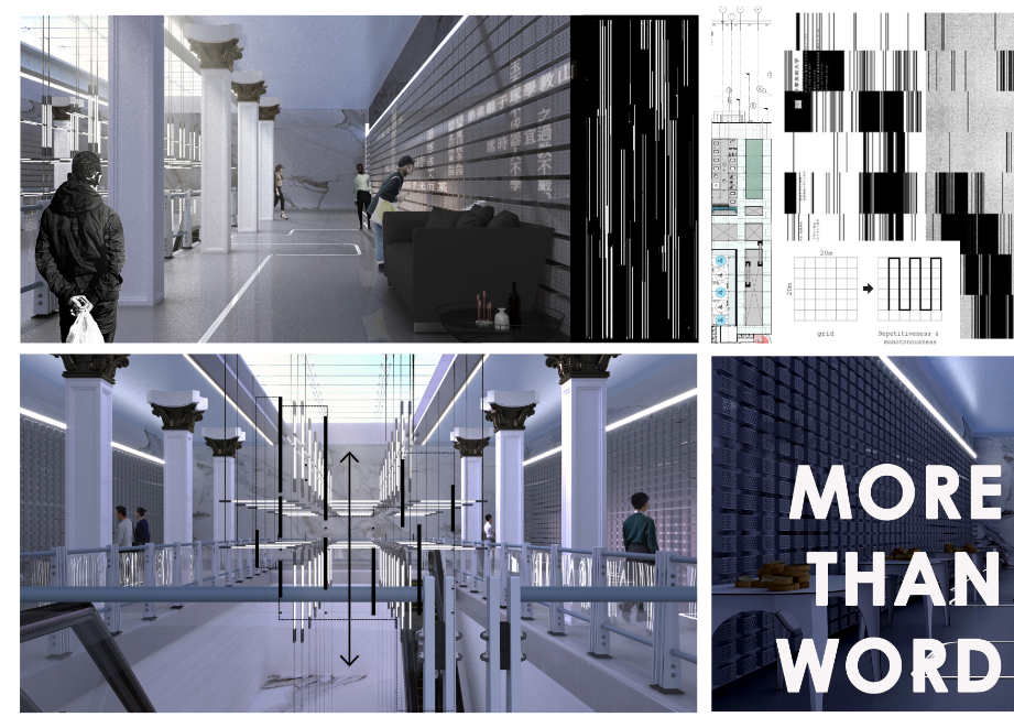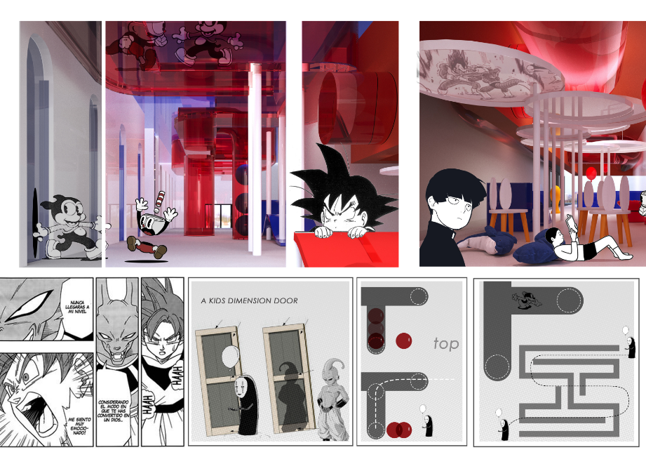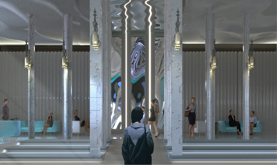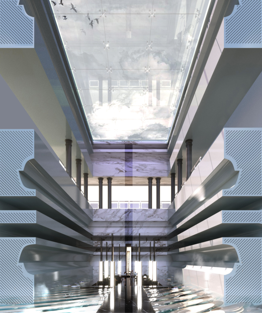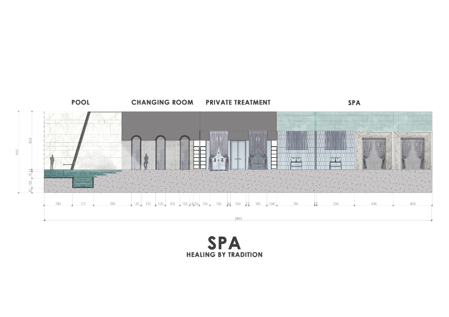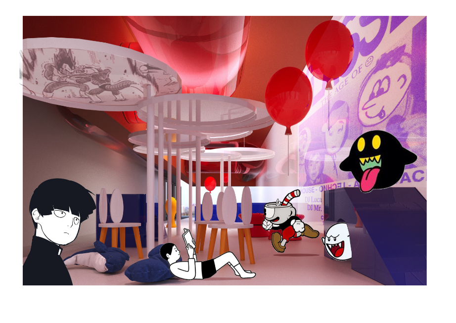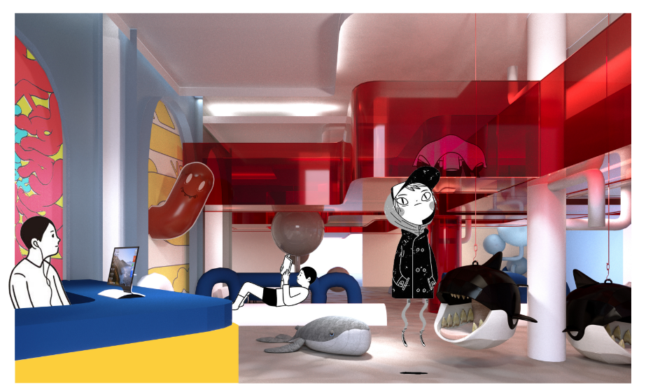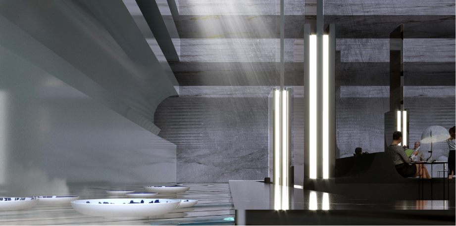 ส่วนคอนเซ็ปต์การตกแต่งและการออกแบบพื้นที่นั้นนำต้นแบบจากศาสนสถานสร้างนัยยะความสงบ แฝงไปกับสภาพแวดล้อมที่คนทั่วไปคุ้นชิน ด้วยสมมาตรของรูปทรงทางสถาปัตยกรรมมาใช้พื้นที่ภายใน เป็นการนำองค์ประกอบมาใช้ในมุมที่แปลกออกไป เช่น การนำขอบมุมมาขยายให้ผิดขนาดและทำซ้ำกัน เป็นประสบการณ์ใหม่ของการเข้าใช้พื้นที่ในประเภทนี้ และเนื่องจากเป็นสองกลุ่มผู้ใช้งานที่ต่างวัยกัน พื้นที่แต่ละส่วนจึงตกแต่งและทำสื่อการนำเสนอออกมาให้เห็นความแตกต่างที่ชัดเจน โดยมีเพียงโดมกระจกขนาดใหญ่ที่กลุ่มผู้ใช้งานใช้ร่วมกันเท่านั้น