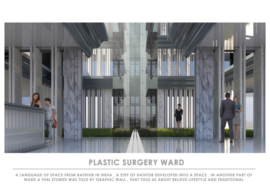 ซึ่งสิ่งแรกที่เราเห็นคือ การเปลี่ยนมุมมองค่านิยมที่ถูกมองว่าไม่ดี ให้เห็นด้านอื่นที่สามารถทำเพื่อสังคมได้ โดยการออกแบบสำหรับผู้เข้าใช้งานหลัก 2 กลุ่ม ที่ได้ประโยชน์จากการรักษาและวัยที่ต่างกัน จากผู้ใหญ่ที่ศัลยกรรมเพื่อความพึงพอใจ สามารถทำบุญส่งต่อให้เด็กเข้ามาศัลยกรรมเพื่อรักษาความพิการได้ ทำให้ศัลยกรรมเป็นแนวทางเยียวยาทั้งร่างกายและจิตใจของคนทั้งสองกลุ่มได้ และเป็นการรวมหน่วยแพทย์ผู้ให้การรักษาเฉพาะทางไว้เป็นศูนย์การแพทย์เฉพาะทางในที่เดียว