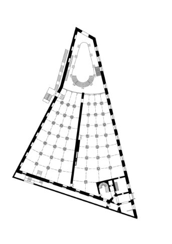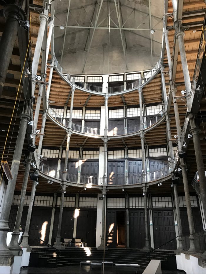 และด้วยความที่มันเป็นโรงทำฉากละคร มันจึงไม่ใช่อาคารสาธารณะที่ต้องมีหน้าตาหรูหราอะไร เซ็มเปอร์ ออกแบบหน้าตาภายนอกของมันอย่างเรียบง่ายตรงไปตรงมาที่สุด ส่วนระบบพื้นที่ภายใน รวมทั้งพื้นที่ช่องเปิดโล่งหลายชั้น ที่ดูอลังการมากในปัจจุบัน แท้จริงแล้ว มันถูกสร้างด้วยโครงสร้างเหล็กอย่างเรียบง่ายที่สุด เพื่อทำหน้าที่เปิดช่วงเสาให้กว้าง เจาะช่องเปิดโล่งทะลุหลายชั้น เพื่อให้ทำการขนย้ายฉากละครเข้าออกอย่างสะดวกที่สุดเท่าที่จะเป็นไปได้ ส่วนพื้นที่ภายในสตูดิโอสร้างฉาก ก็เป็นห้องใหญ่โล่งๆ ไม่ได้มีการกั้นผนังซับซ้อน แต่ปล่อยผังพื้นให้โล่งว่าง เพื่อเอื้อต่อการทำงานกับฉากละครขนาดใหญ่อย่างง่ายที่สุดเท่าที่จะเป็นไปได้