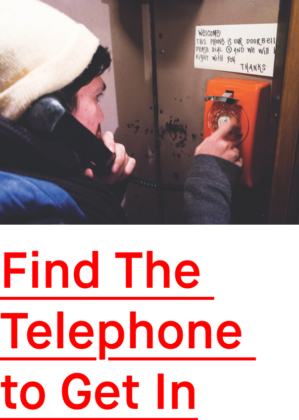 วิธีจะเข้าบาร์แห่งนี้คือหาโทรศัพท์โบราณให้เจอ แล้วทำตามคำแนะนำที่เขียนไว้ข้างๆ โทรศัพท์ จะมีพนักงานถามว่ามากี่คน แล้วประตูลับก็จะถูกเปิดออกให้เดินขึ้นไปชั้นบนที่มีบาร์อันงดงามอลังการซ่อนตัวอยู่