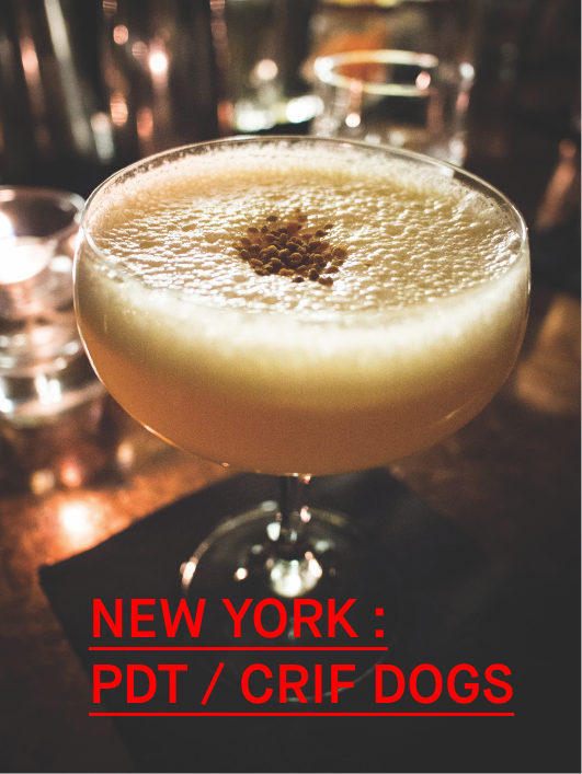 PDT ย่อมาจาก Please Don't Tell ถือเป็น Speakeasy Bar ที่ได้รับความนิยมมากในนิวยอร์ก บาร์แห่งนี้ซ่อนตัว หรือจริงๆ ควรจะใช้คำว่ามีฉากหน้าเป็นร้านขายฮอตด็อก ชื่อ CRIF DOGS ที่คนทั่วไปผ่านไปผ่านมาก็ไม่มีทางรู้แน่นอนว่ามีบาร์ค็อกเทลซ่อนตัวอยู่ด้านหลังของผนังด้านหนึ่งของร้าน