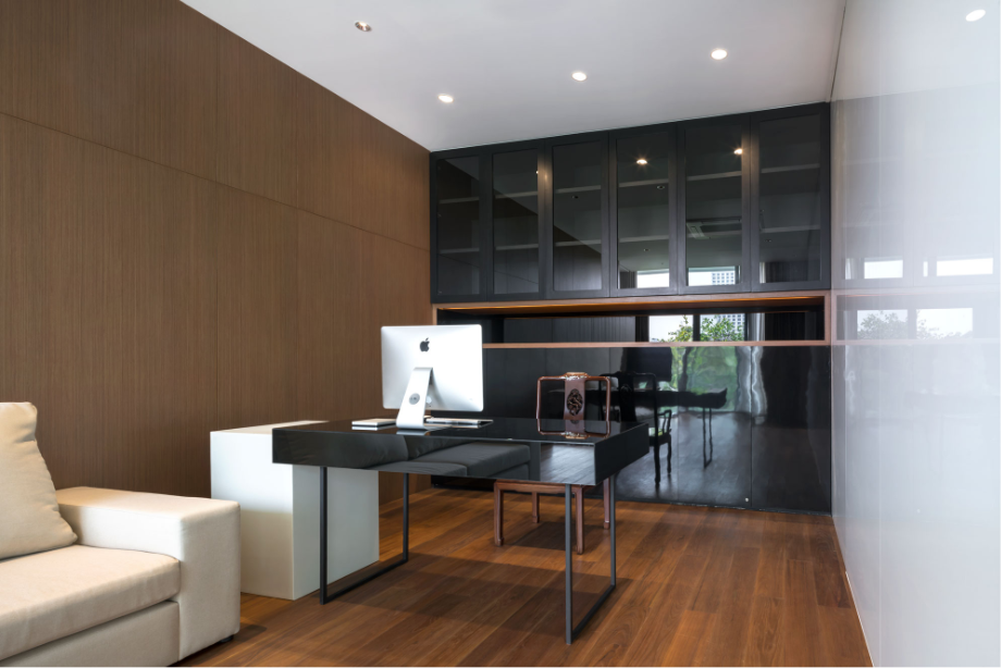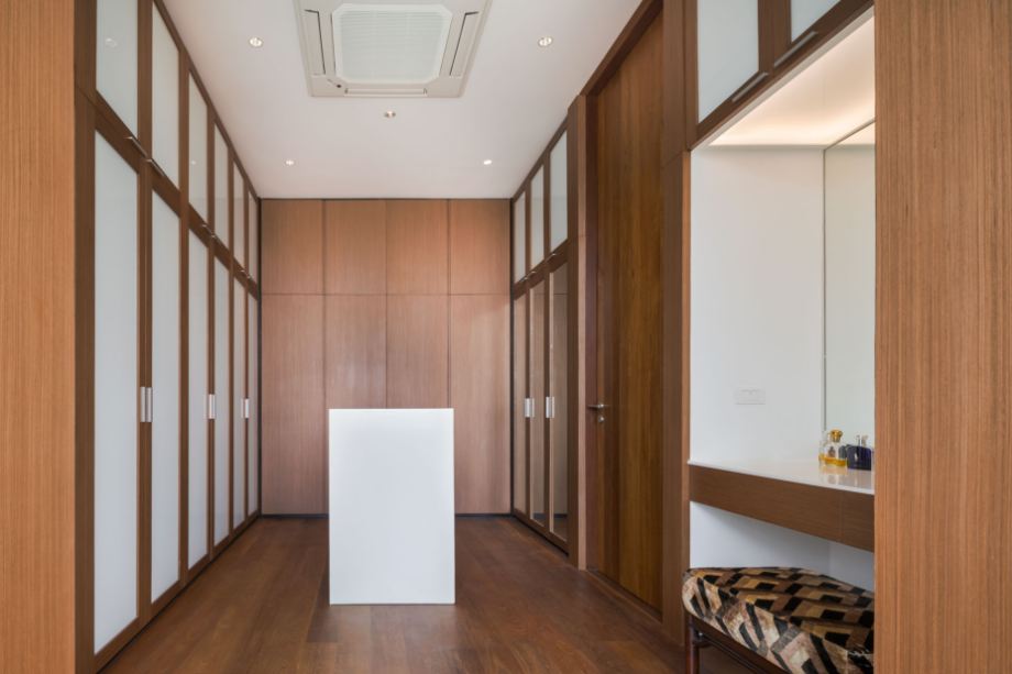 การตกแต่งพื้นที่ส่วนกลางของบ้านเน้นการใช้กระเบื้องหิน ผนังขาว และไม้ เพื่อให้ความรู้สึกอบอุ่นเหมาะกับสมาชิกในบ้านทุกวัย แต่ในขณะเดียวกัน เมื่อเข้าไปในพื้นที่ส่วนตัวของแต่ละคน พวกเขาก็สามารถปรับเปลี่ยนสร้างสรรค์บรรยากาศในแบบที่ตนเองต้องการได้อย่างเต็มที่